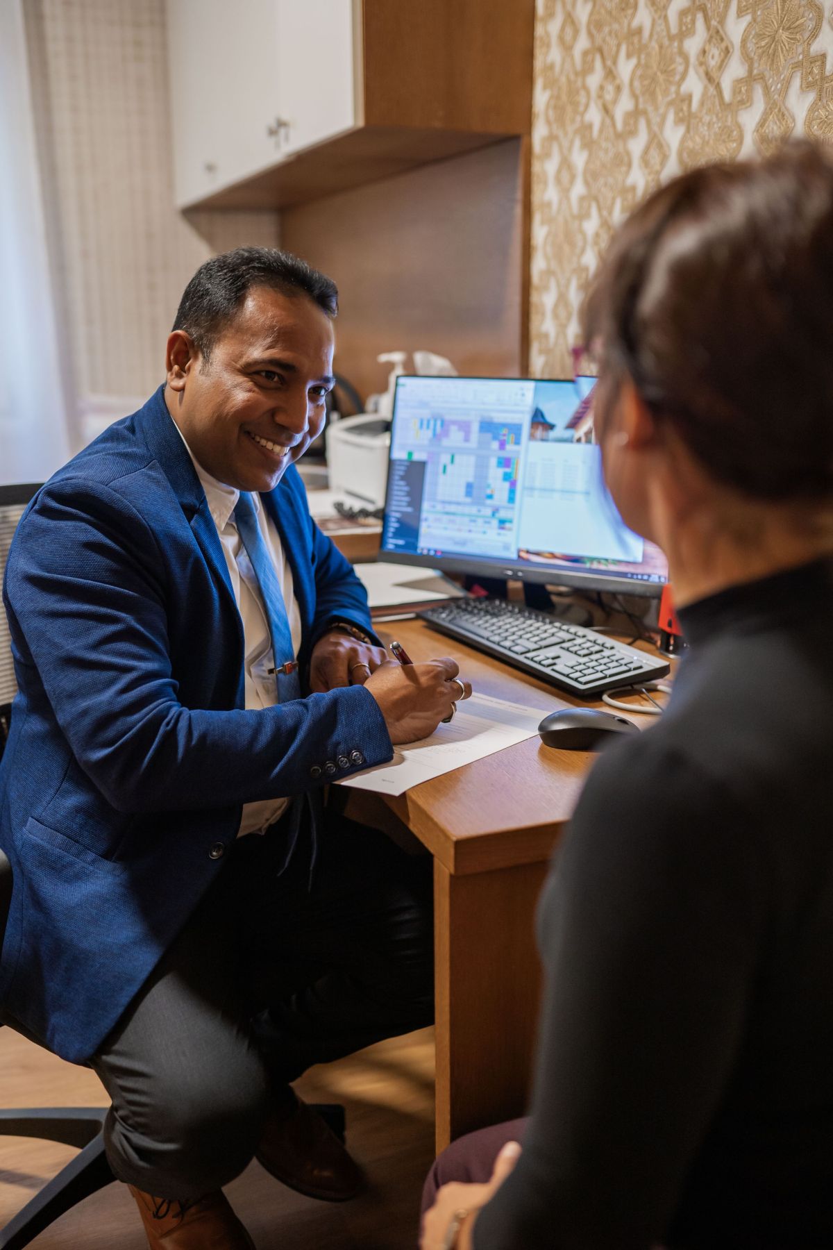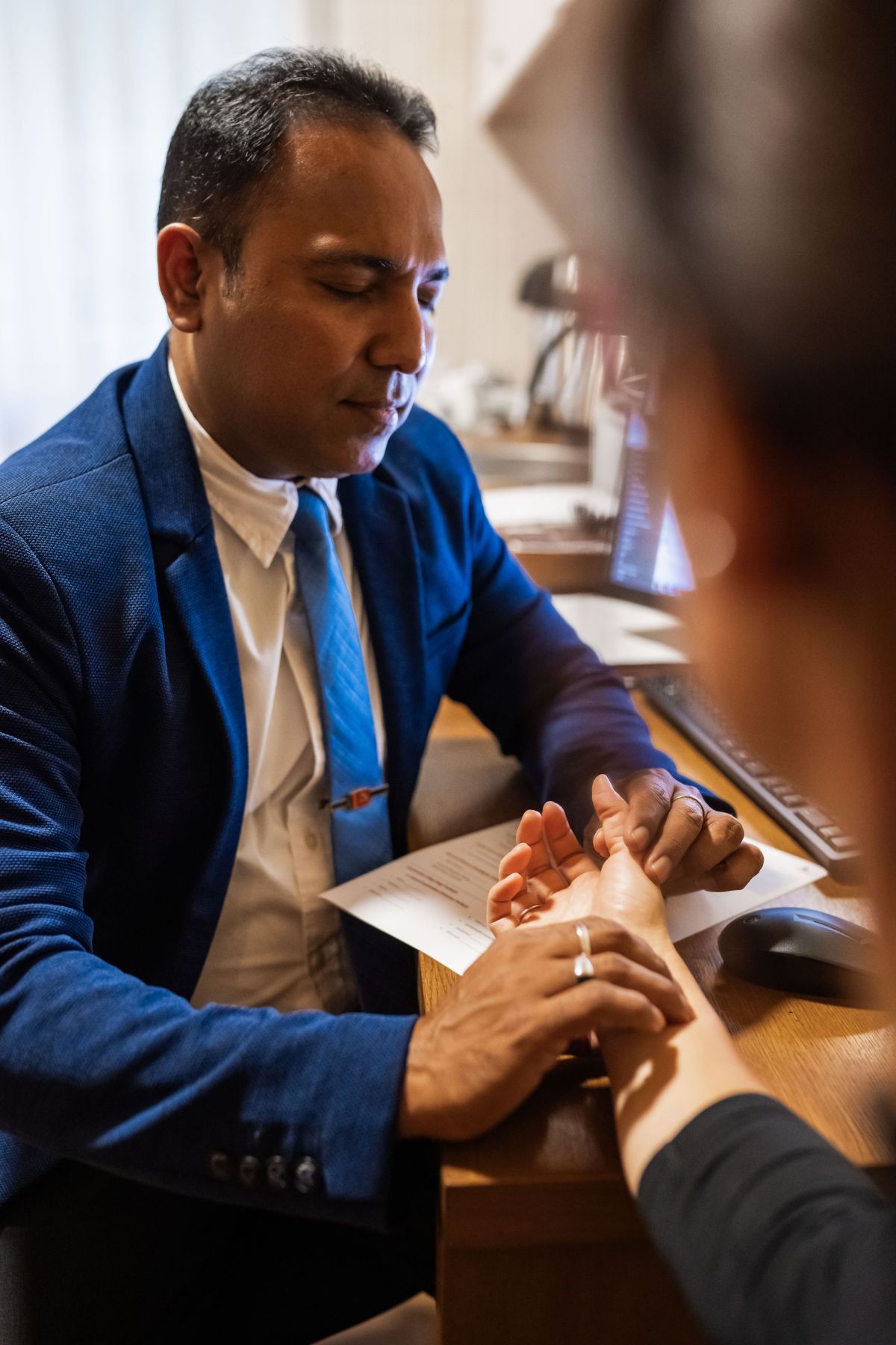 Konzultace jde nad rámec pouhého hodnocení fyzických příznaků a zaměřuje se na posouzení vaší jedinečné konstituce (Prakriti) a aktuálních nerovnováh (Vikriti). Celý proces obvykle trvá okolo 20 minut a probíhá v následujících krocích: