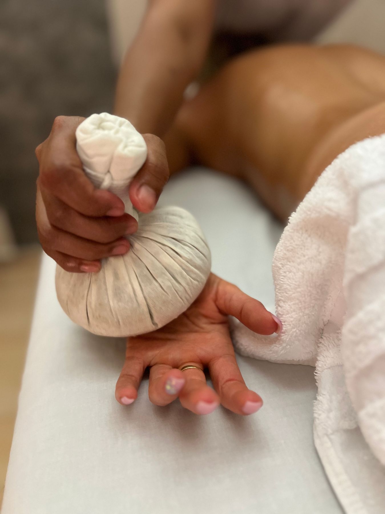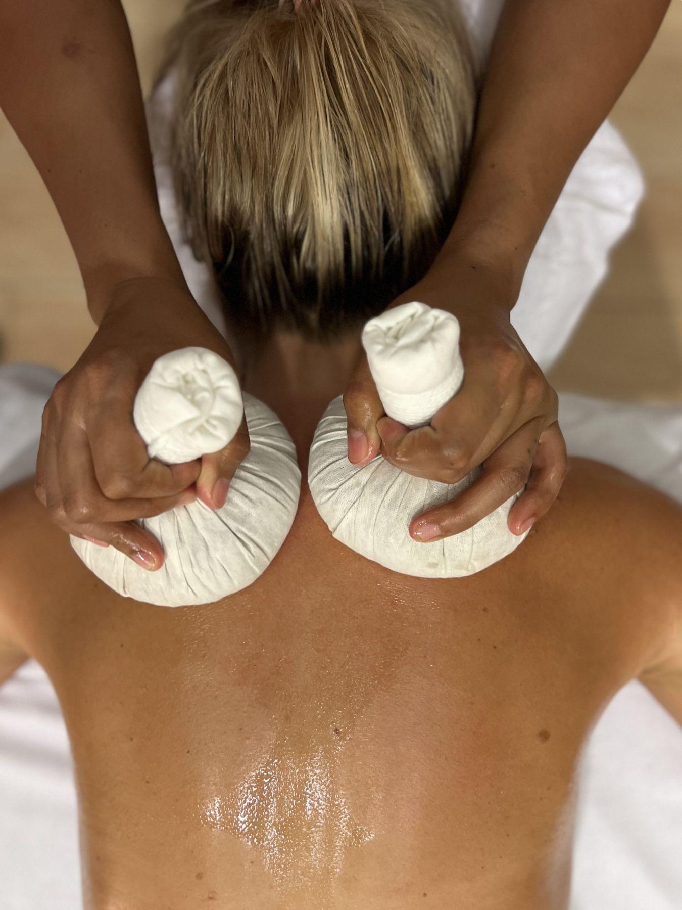 Nahřáté měšce jsou plněny pečlivě vybranou směsí ayurvédských bylin, rýže a dalších přírodních ingrediencí, jejichž složení je přizpůsobeno konkrétním potřebám klienta. Teplo v kombinaci s účinky bylin podporuje uvolnění svalového napětí, lepší pohyblivost kloubů a celkovou regeneraci organismu.